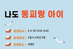 <나도 동피랑 아이> 프로그램 안내 운영일시 8. 8.(토) 14:00~16:00운영대상 초등학생 4~6학년 15명운영장소 세병관(매표소 앞 집결) 운영내용 - 그림책 '동피랑 아이(이담원 글)'를 함께 읽고 자개에 대해 알아보기 - 자개 체험(열쇠고리 제작)하기 - 책 속 인물에게 편지쓰기(책 속 인물에게 쓰는 한글 손편지 공모) …