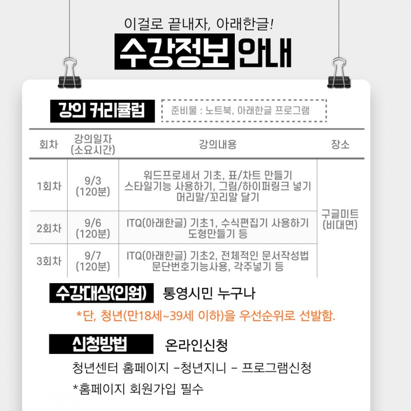 ※ 문의사항 : 통영시청년센터(055-645-1838)