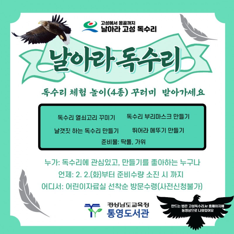 * 대상 : 독수리에 관심있고, 만들기를 좋아하는 누구나