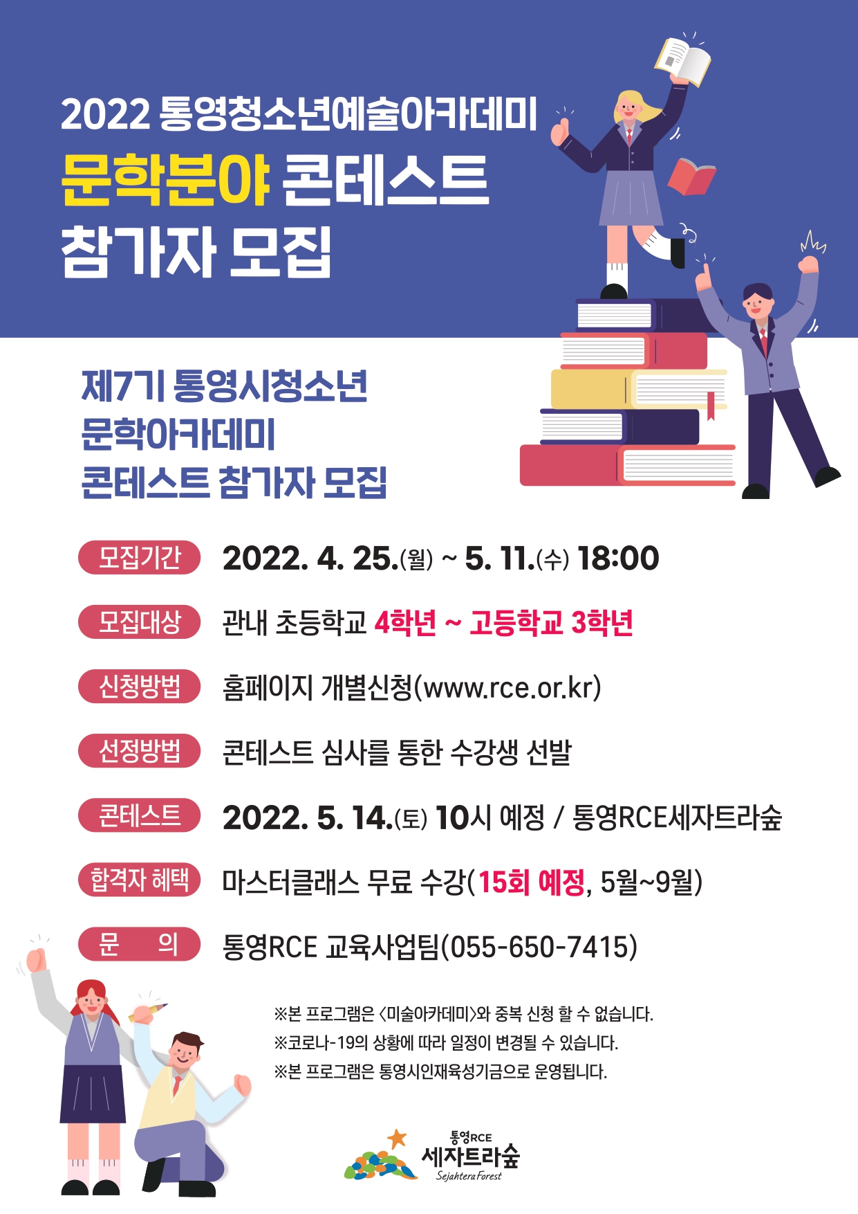 [학교·청소년교육] [학교·청소년교육] 2022 제7기 통영청소년문학아카데미 콘테스트 참가자 모집