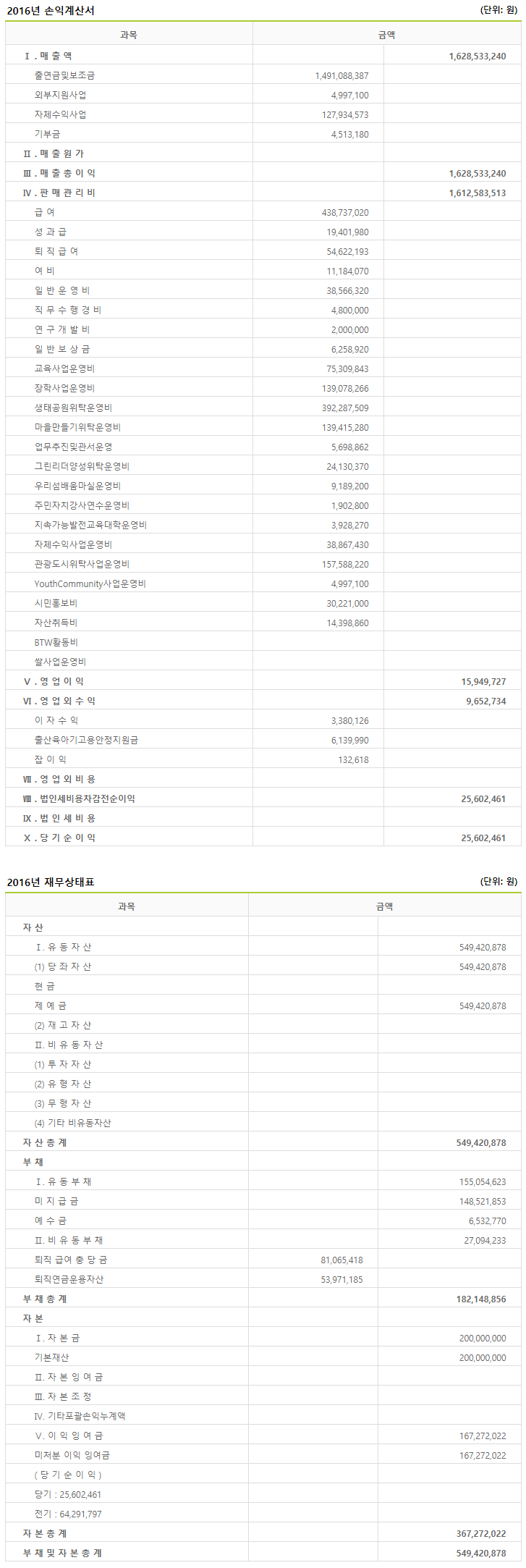2016년 재정보고
