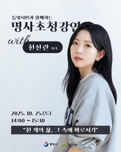 ★ 신청 전 필독사항 ★ 본 명사초청 프로그램은 평생학습도시 통영을 위한 행사로, ✿ ✿ ✿ ✿ ✿ ✿ ✿ ✿ ✿ ✿ ✿ <천 개의 삶, 그 속에 바로서기> 평생학습도시 통영, 시민과 함께하는 명사초청 강연에 여러분을 초청합니다. |일시: 2025. 10. 25.(토) 14:00 ~ 15:30 |장소: 통영RCE세자트라숲 1층 행동하다 ![]()